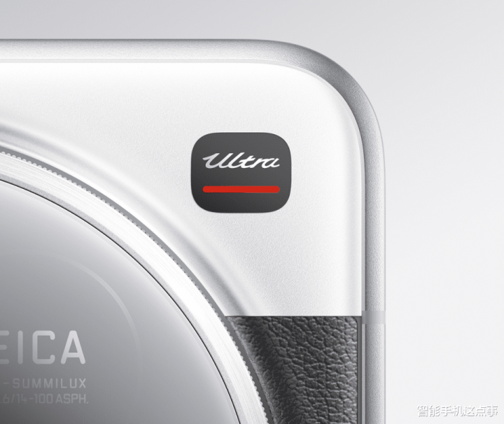 值得一提的是,新机左侧是银灰色的玻璃或玻纤材质,右侧是素皮材质,且左上角还有小角标,不过其中似乎并不是徕卡logo,而是“Ultra”字样。